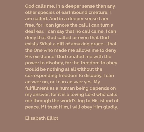“My fulfillment depends on my answer…” Whew. Convicting. “If I trust Him, I will obey Him gladly.” Elisabeth Elliot Obedience in the face of disappointing others is h.a.r.d. Especially when you’re coming out of a lifetime of seeking to please others. Obedience when it’s hard to say yes is hard.Obedience when it’s hard to say no is hard. But friends,…
